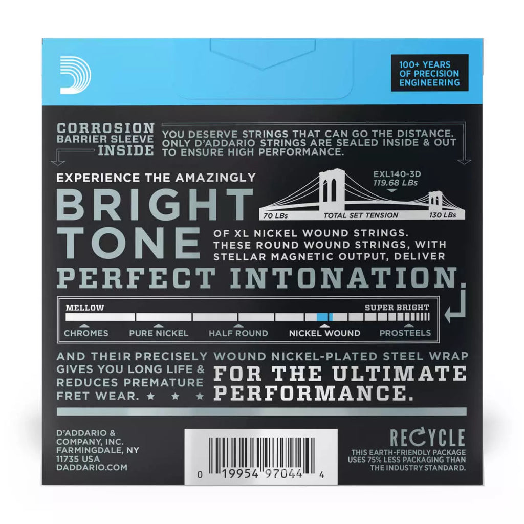 D'Addario EXL140-3D Guitare électrique XL Lt/hvy 10-52 3-Pack