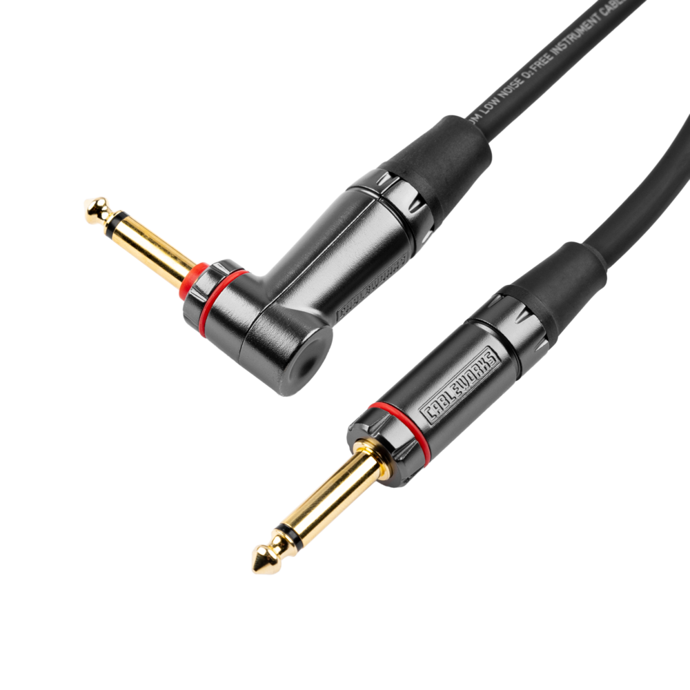 Gator GCWH-INS-10RAQT Headliner Series 1/4" Straight To 1/4" Right Angle Quiet Instrument Cable - 10ft