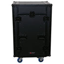Odyssey FZGS1116WDLXBL - Rack combo vertical noir 11U haut incliné 16U bas avec roulettes, table d'appoint et plate-forme coulissante